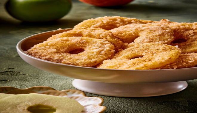 - Περνάμε τις τηγανίτες μήλου μία μία στο μείγμα, γυρνώντας τες για να καλυφθούν καλά. Τις σερβίρουμε ζεστές.