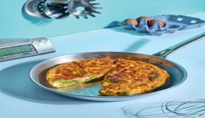 - Γυρίζουμε την ομελέτα από την άλλη πλευρά με το καπάκι του σκεύους και ψήνουμε για άλλα 3-4 λεπτά.