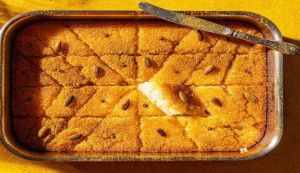 Παραδοσιακό ρεβανί από το Γαλαξίδι, με ρύζι αντί για σιμιγδάλι. Μια διαφορετική, πεντανόστιμη εκδοχή που αξίζει να δοκιμάσετε.