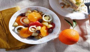 Μυρωδάτη και δροσερή σαλάτα, που συνηθίζεται ιδιαίτερα στη Μάνη αλλά και στην Κέρκυρα. Συνοδεύει ιδανικά κρεατικά και πουλερικά, αλλά είναι και ένα ωραιότατο σαλατογεύμα.