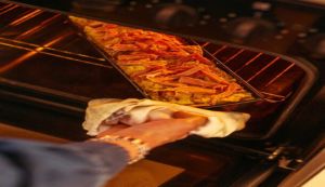 - Για να φτιάξουμε αλμυρή πουτίγκα ψωμιού με τυριά και ζαμπόν, αρχικά προθερμαίνουμε τον φούρνο στους 220°C.
