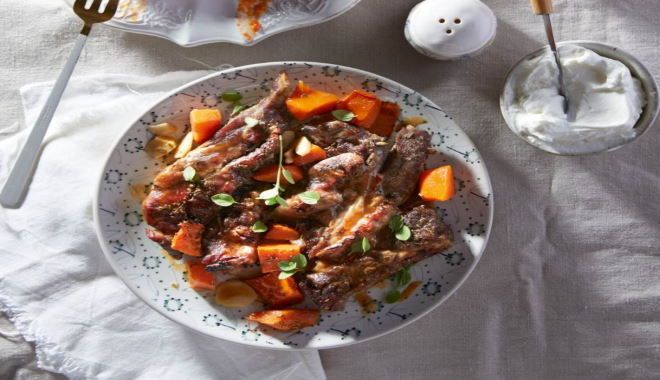 Η γλυκιά κόκκινη ή κίτρινη κολοκύθα είναι τώρα στην εποχή της και απολαμβάνουμε την ελαφρώς γλυκιά και γήινη γεύση της σε συμμαγειρέματα με ρωμαλέα κρέατα, όπως αυτά τα μοσχαρίσια μπριζολάκια.