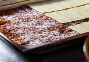 - Θα πρέπει να έχουμε 4 στρώσεις λαζάνια με 3 στρώσεις κιμά.