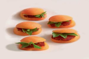 - Καλύπτουμε με άλλη μία φέτα βερίκοκο, σχηματίζοντας ένα ιδιότυπο σάντουιτς. Επαναλαμβάνουμε τη διαδικασία μέχρι να τελειώσουν τα υλικά.
