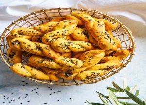 - Τα αλείφουμε ελαφρώς με λίγο νερό και τα πασπαλίζουμε με μαυροσούσαμο.