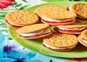 Αυτό το έκτακτο δροσερό γλυκάκι, που στη γεύση θυμίζει τσίζκεϊκ, έχει στέβια αντί για ζάχαρη, ετοιμάζεται σε μερικά λεπτά και μετά μένει μόνο να παγώσει. Ένα παγωτό-σάντουιτς εύκολο και γρήγορο!