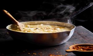 Ένα αχνιστό πιάτο με ξινό αλευρένιο τραχανά, φρέσκο κατσικίσιο γάλα και βουτυράτη φέτα. Το comfort food στα ελληνικά.