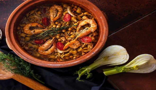 Ο συνδυασμός ρεβιθιών και γενικότερα οσπρίων με γαρίδες είναι ένας συνηθισμένος συνδυασμός στην αγιορείτικη μαγειρική. Είναι όμως και μια από τις πιο κλασικές ιταλικές συνταγές, αν τους προσθέσουμε και ζυμαρικά.