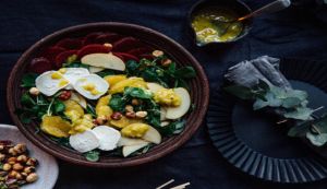 Παντζάρι, πορτοκάλι, κατσικίσιο τυρί. Γνήσια χειμωνιάτικες γεύσεις και ωραία αρώματα σε μια σαλάτα ιδανική για ένα τραπέζι στο σπίτι, που μπορούμε όμως να απολαύσουμε και ως ελαφρύ κύριο πιάτο.