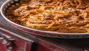 - Χαμηλώνουμε τη φωτιά καλά και σιγομαγειρεύουμε για άλλα 30 λεπτά, ανακατεύοντας τακτικά. Αν χρειαστεί, προσθέτουμε λίγο νερό. Η σάλτσα πρέπει να είναι ελαφρώς υδαρής.