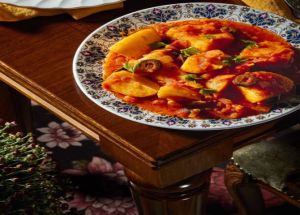 Νόστιμο, χορτοφαγικό, κατσαρολάτο φαγάκι από τη Σμύρνη με πατάτες, ντομάτα και ελιές, ιδανικό ως συνοδευτικό ή ως κύριο γεύμα.