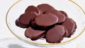 - Βυθίζουμε κάθε κομμάτι στη ρευστή κουβερτούρα, ώστε να καλυφθεί εντελώς, και τα αφήνουμε σε ένα ταψί στρωμένο με λαδόκολλα. Βάζουμε στο ψυγείο για περίπου 1 ώρα, μέχρι η σοκολάτα να παγώσει και να στερεοποιηθεί.