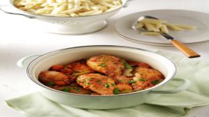 Τα παιδιά θα ξετρελαθούν με τα κοκκινιστά μπουτάκια και το ζυμαρικό που τα συνοδεύει.