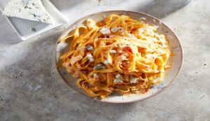 Γρήγορο και εύκολο φαγάκι, χωρίς όμως να του λείπουν η νοστιμιά και οι εντάσεις. Σερβίρουμε τις ταλιατέλες με κρέμα καπνιστής πιπεριάς Φλωρίνης και θρυματισμένο μπλε τυρί και απολαμβάνουμε.
