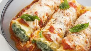 Αυτά τα κανελόνια φούρνου, γεμίζονται με σπανάκι, μπέικον και τυριά.