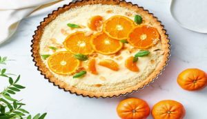 Η γκανάς σοκολάτας κρύβεται κάτω από την, όλο φρεσκάδα, κρέμα μανταρινιού. Η πιο ωραία τάρτα του χειμώνα!