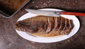 - Παίρνουμε ένα μακρύ και κοφτερό μαχαίρι χωρίς δόντια και το μπήγουμε προσεκτικά στη μία στενή άκρη της σπλήνας.