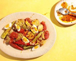Ένα απλό, νόστιμο και θρεπτικό φαγητό με ψητά λαχανικά, βραστά αυγά και βινεγκρέτ. Ιδανικό για το ταπεράκι της δουλειάς!