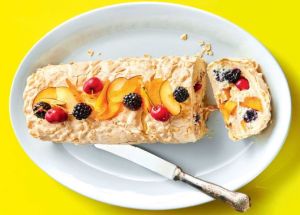 Με λίγα υλικά φτιάχνουμε ένα εντυπωσιακό ρολό μαρέγκας με γέμιση από σαντιγί και ανάμεικτα φρούτα του καλοκαιριού.