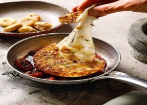 Μεζές που εξαφανίζεται σε χρόνο μηδέν το λαδοτύρι σαγανάκι με γλυκοπικάντικη σάλτσα από ξερά σύκα, κρασί και πιπέρι.