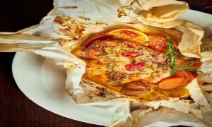 - Στο τέλος ανοίγουμε προσεκτικά την κορυφή του πακέτου, προσέχοντας να μη χυθούν οι νόστιμοι χυμοί, και ψήνουμε για άλλα 20 λεπτά, μέχρι να ροδίσουν ωραία τα υλικά.