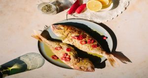 - Περιχύνουμε με το μείγμα τα λυθρίνια και μαγειρεύουμε για 2-3 λεπτά ή μέχρι να εξατμιστεί το αλκοόλ.