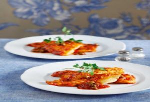 Φίνα, ζουμερή γλώσσα με λαχταριστή κόκκινη σάλτσα και μπόλικη κάππαρη. Νοστιμότατη.