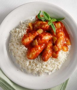 Το μυστικό στα σουτζουκάκια κοτόπουλου με την πλούσια σάλτσα ντομάτας είναι η σπιρτόζικη πιπεριά και στον κιμά και στην σάλτσα.