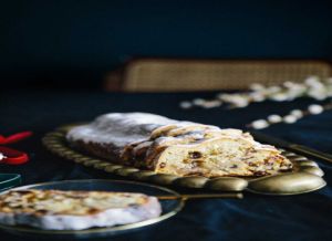 Ένα σφιχτό τσουρέκι με πλούσια γέμιση από σταφίδες, πικραμύγδαλα, φλούδα πορτοκαλιού και λεμονιού, που… μυρίζει γερμανικά Χριστούγεννα.