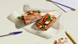 - Κλείνουμε σε σάντουιτς και τυλίγουμε σε λαδόχαρτο και αλουμινόχαρτο.
