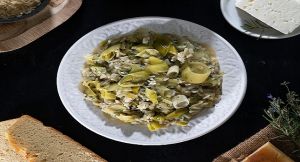 - 1.200 γρ. πράσα κομμένα σε ροδέλες (το λευκό και τρυφερό πράσινο μέρος - το υπόλοιπο το διατηρούμε στο ψυγείο για να ετοιμάζουμε ζωμούς κ.α.)