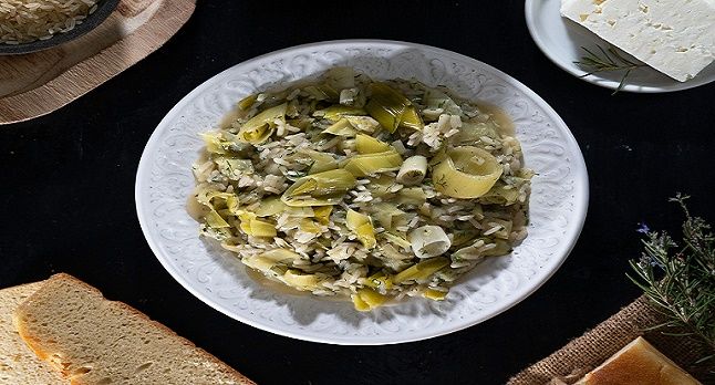 Το δικό μας κόμφορτ ριζότο δεν είναι άλλο από ένα καλομελωμένο πρασόρυζο με όλη τη γλύκα του πράσου και τη φρεσκάδα των μυρωδικών.