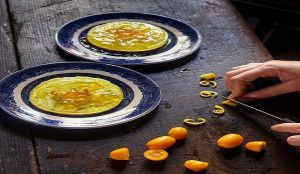 - Διακοσμούμε με τα ζαχαρωμένα κουμκουάτ και σερβίρουμε αμέσως.