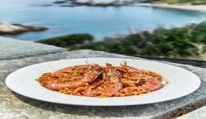 Το δικό μας ριζότο: η μανέστρα μαλακώνει, σιγομαγειρεύεται και φουσκώνει απαλά, παραμένοντας ζουμερή και χυλωμένη. Οι γαρίδες απογειώνουν το πιάτο.