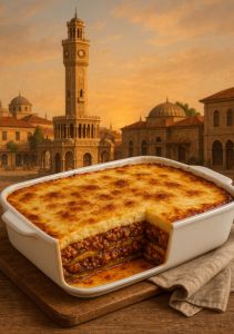 Ο αυθεντικός σμυρναίικος μουσακάς με ζουμερό κιμά, αρωματικά λαχανικά και την πιο τέλεια κρέμα γιαουρτιού. Απολαυστικότατος.
