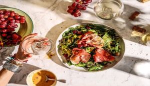 - Βάζουμε σε κάθε πιάτο από 2 φέτες προσούτο ή χαμόν, τυλιγμένες σε ρολάκια ή επιμελώς τσαλακωμένες, και σερβίρουμε.