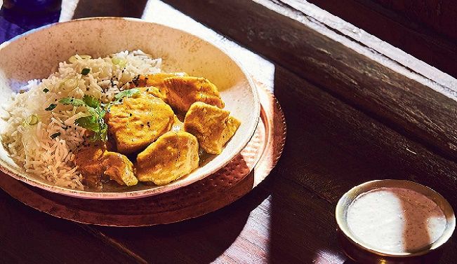Ένα πλούσιο κάρι με μπόλικο καρδάμωμο (κακουλέ) δίνει έντονη γεύση και άρωμα στο κοτόπουλο. Συνοδεύουμε με ρύζι μπασμάτι και πίκλες λαχανικών.