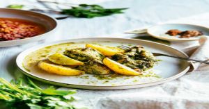 - Στον πολυκόφτη που διαθέτουμε χτυπάμε τα μυρωδικά με το ελαιόλαδο, τη μουστάρδα και το σκόρδο μέχρι να σχηματιστεί μια λεία σάλτσα.