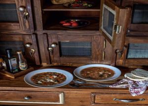 Μια άλαδη σούπα που φτιάχνουν στην Ιερά Μονή του Σινά με λαχανικά από τους κήπους τους – κάποιες φορές αντί για κριθαράκι βάζουν ρύζι.