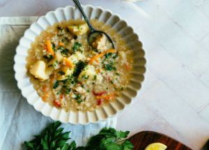 Μια αρωματική και πλούσια κοτόσουπα -το ρύζι τη νοστιμίζει και τη χυλώνει ιδανικά-, ό,τι πρέπει για τις μέρες που δε νιώθουμε και τόσο καλά και ψάχνουμε θαλπωρή και ζεστασιά.