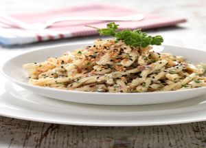 - Την ανακατεύουμε με τα ζεστά μακαρόνια και σερβίρουμε αμέσως.
