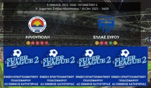 Το Σάββατο 18.10.2025 και ώρα 02.00 μ.μ., η ομάδα της ΗΛΙΟΥΠΟΛΗΣ αντιμετωπίζει εντός έδρας την ΕΛΛΑΣ ΣΥΡΟΥ στα πλαίσια της 6ης αγωνιστικής της Super League 2.