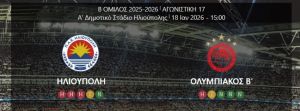 ΤΗΝ ΚΥΡΙΑΚΗ 18.01.2026 ΚΑΙ ΩΡΑ 03.00 Μ.Μ. Η ΟΜΑΔΑ ΤΗΣ ΗΛΙΟΥΠΟΛΗΣ ΥΠΟΔΕΧΕΤΑΙ ΤΟΝ ΟΛΥΜΠΙΑΚΟ Β. ΣΤΑ ΠΛΑΙΣΙΑ ΤΗΣ 17ης ΑΓΩΝΙΣΤΙΚΗΣ ΤΗΣ SUPER LEAGUE 2.