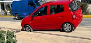 Έτσι, η ρόδα του οδηγού κατέληξε στο μικρό «χαντάκι», στο οποίο – όπως οδηγός και περίοικοι διαπίστωσαν – οι διαστάσεις της ταίριαζαν… γάντι.