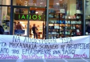 Την απρόκλητη επίθεση των ΜΑΤ δέχτηκαν απεργοί-εργαζόμενοι στο χώρο του βιβλίου, που πραγματοποίησαν διαμαρτυρία εναντίον της κατάργησης της Κυριακάτικης αργίας έξω από το βιβλιοπωλείο «Ιανός» στην οδό Σταδίου το πρωί της Κυριακής.
