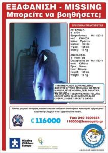 Το όνομα του αγοριού είναι Άγγελος Κ., είναι 4 ετών, έχει πράσινα μάτια, ξανθά μαλλιά, και ανοιχτό δέρμα.