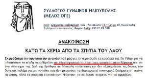 Στεκόμαστε στο πλευρό της Ελισάβετ και δηλώνουμε ότι θα είμαστε στο πλευρό της, αλληλέγυες στον αγώνα της και σε συννενόηση με τον Σύλλογο Γυναικών Βύρωνα (μέλος ΟΓΕ). Καλούμε τα Σωματεία και τους Φορείς της Ηλιούπολης σε επαγρύπνηση και ετοιμότητα για αγωνιστικές κινητοποιήσεις το επόμενο διάστημα.