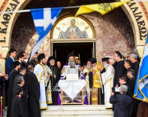 Το Ιερό Λείψανο κόμισε στην Ηλιούπολη από την Κατερίνη ο Σεβασμιώτατος Μητροπολίτης Κίτρους κ. Γεώργιος, το οποίο μεταφέρθηκε με πομπή στον Ιερό Ναό.