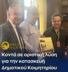 Συνάντηση με τον Γενικό Γραμματέα του Υπουργείου Εθνικής Άμυνας (ΥΠΕΘΑ) κ. Αντώνιο Οικονόμου πραγματοποίησαν ο Δήμαρχος Ηλιούπολης Γιώργος Χατζηδάκης και ο Αντιδήμαρχος Τοπικής Ανάπτυξης & Επιχειρηματικότητας Σταύρος Γεωργάκης προκειμένου να βρεθεί οριστική λύση σε ένα μείζον πρόβλημα που εκκρεμεί επί δεκαετίες, την κατασκευή Δημοτικού Κοιμητηρίου.