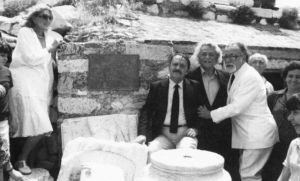 Ωστόσο αυτή η πινακίδα με τα ονόματα των δύο αγωνιστών βρίσκεται ήδη στο εμβληματικό μνημείο από το 1982!.Σε φωτογραφία από το αρχείο του αγωνιστή Λάκη Σάντα εμφανίζονται επίσης ο Μανώλης Γλέζος, η τότε υπουργός Πολιτισμού Μελίνα Μερκούρη και ο αρχαιολόγος Μανώλης Ανδρόνικος.